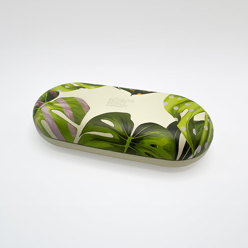 Die Co-Branding Box ist das Ergebnis der Verschmelzung der markanten Ästhetik von WOUF aus Barcelona mit der Leidenschaft von Authentic Beauty Concept für natürliche Schönheit. Von der Kraft tropischer Elemente wie Palmen und exotischen Blättern inspiriert fängt diese Beauty Box den Geist von Kreativität und Individualität ein.