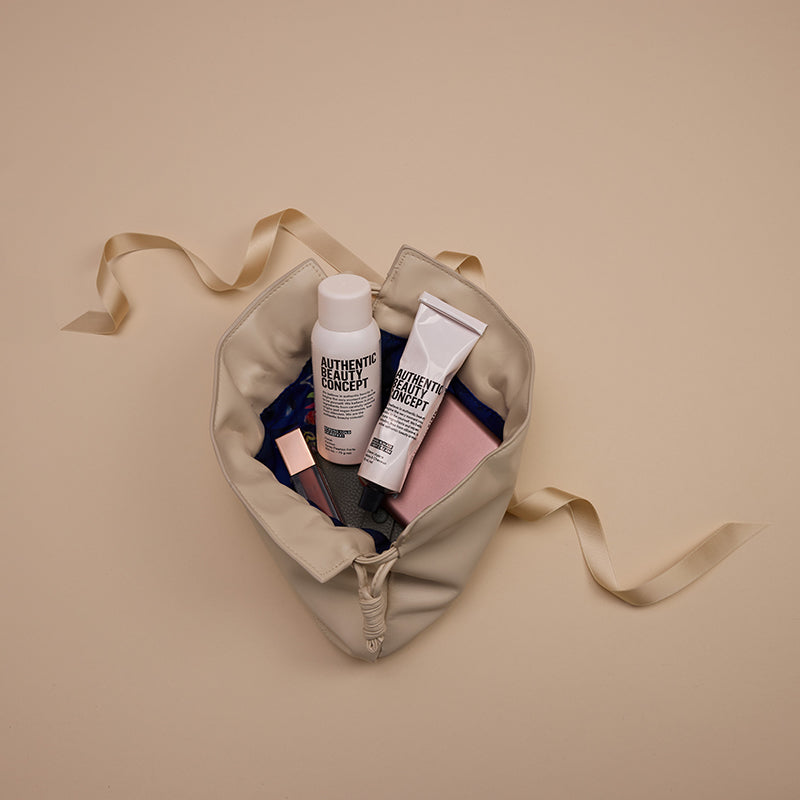 Authentic Beauty Concept | Dry Shampoo 250ml, Indulging Fluid Oil 100ml, Strong Hold Hairspray 100ml, Hand & Hair Light Cream 75ml, Soft-Pouche